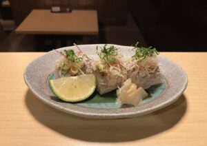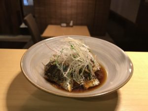 新秋刀魚炙り 二杯酢と合わせ薬味で‥