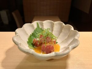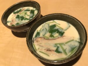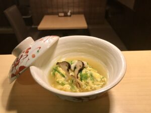 松茸の小茶碗蒸し 秋刀魚の炙り棒すし