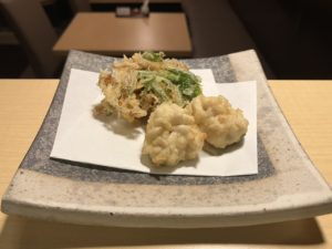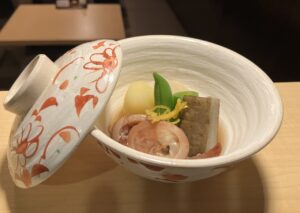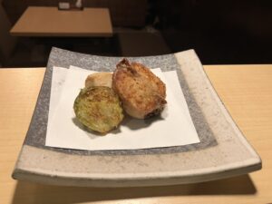 海老真薯と蓮根 芽キャベツ 芽慈姑