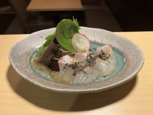 桜鯛の炙り 胡麻油とポン酢ジュレで‥